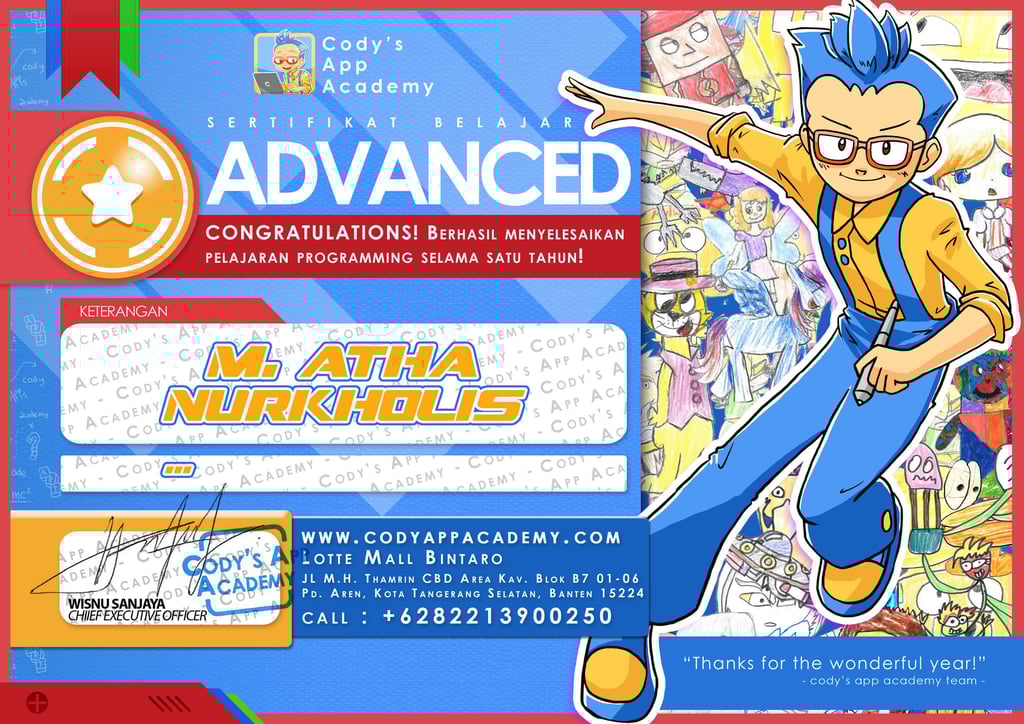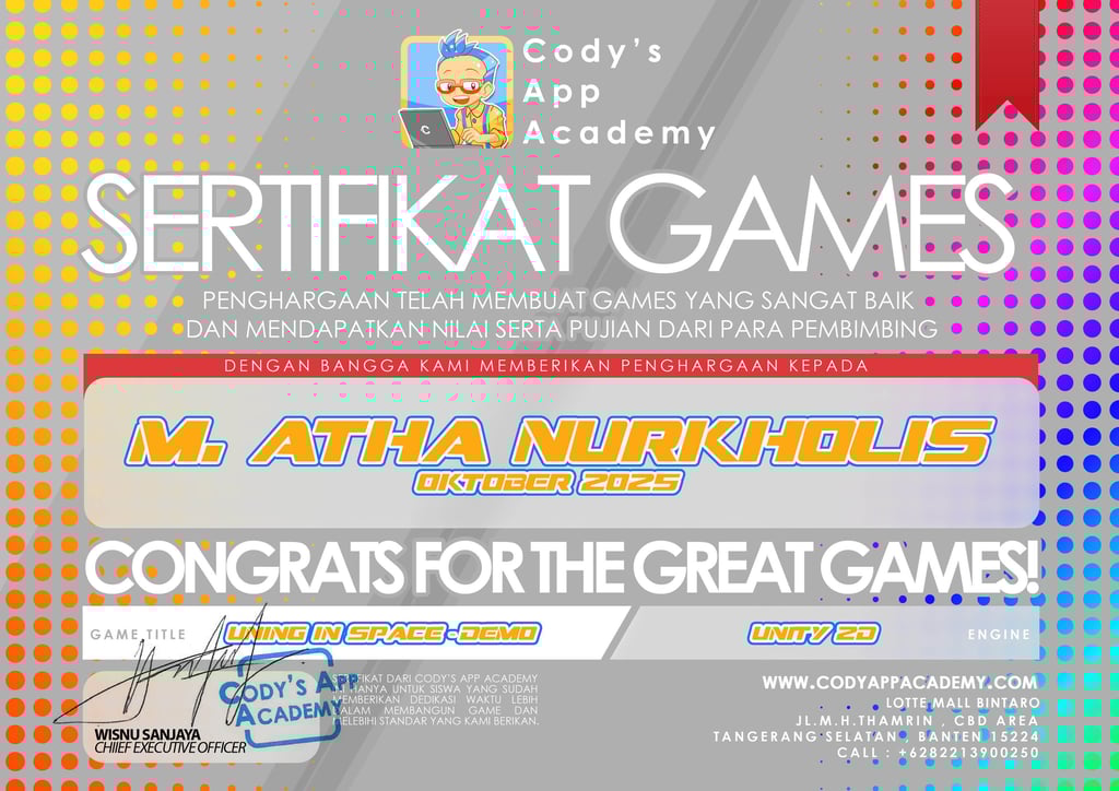 At Cody's App Academy, Atha is a student with a strong exploratory spirit. He really enjoys challenging himself, which is evident when he develops video games. The games he creates often include features with a fairly high level of complexity. He has the ability to independently build whatever he sets his mind to. This was especially clear in the Android TOPDEV Season 02 project, where he developed the game Angry Birds x Sushi Cat.