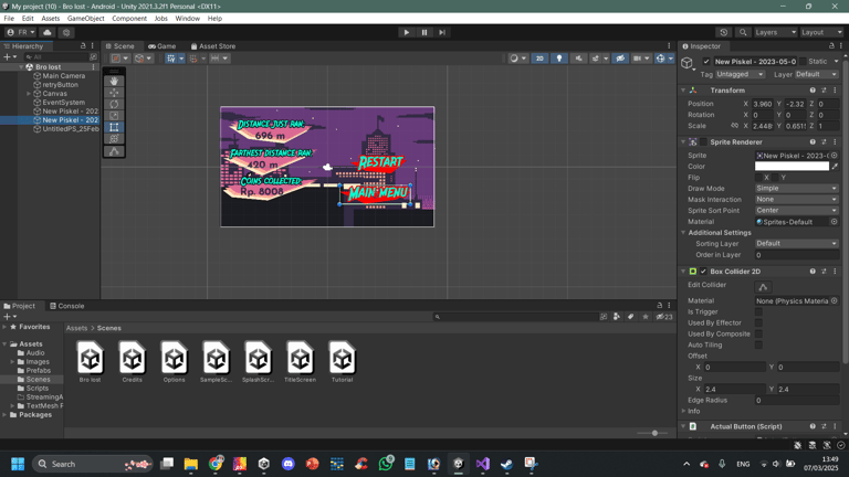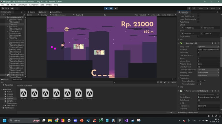 Farhan masih terus membangun karya video gamenya untuk Google Play, yang sudah dibuat sejak JUNI 2024. Project game buatan dia masih belum selesai, karena memang masuk kategori cukup advanced. Game yang dia buat adalah type endless running , bertema salaryman. Hanya butuh beberapa bulan saja untuk menyelesaikan project game ini. Sebaiknya kedepannya Farhan harus mempertimbangkan untuk 2x pertemuan dalam seminggu. Untuk memaksimalkan game buatannya, dan juga untuk memaksimalkan kemampuan game development dia yang sudah di atas rata-rata anak seumurnya.